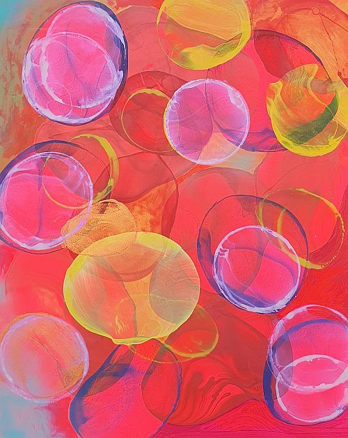 mýdlové bubliny a pigmenty na plátně