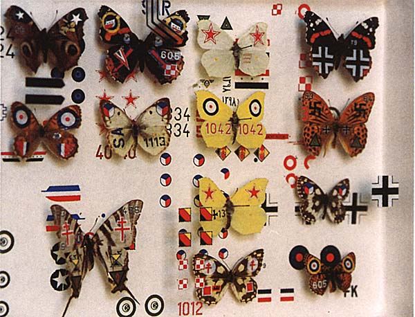 1996, sbírka motýlů, letecké výsostné znaky, skříňka 30 x 23 cm