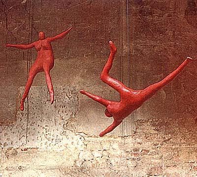 1981-1987, vycpaný textil odlitý do polyesterového laminátu, 190 x 80 cm, 120 x 120 cm