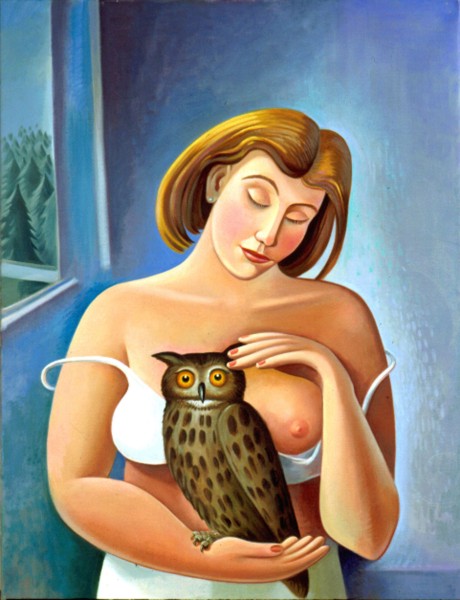 Athena hladící svou sovu.