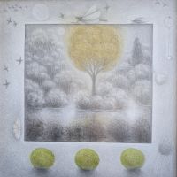 kombinovaná technika a bavlnky na plátně |
