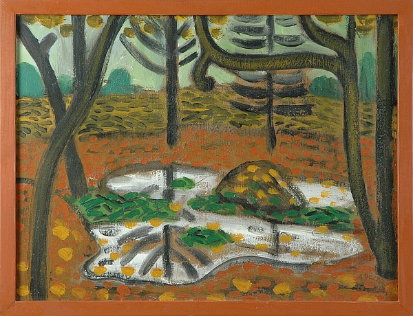Jezírka u Lipiny I, akryl na dřevotřísce, (46 x 60) cm, XI/2001, majetek autora