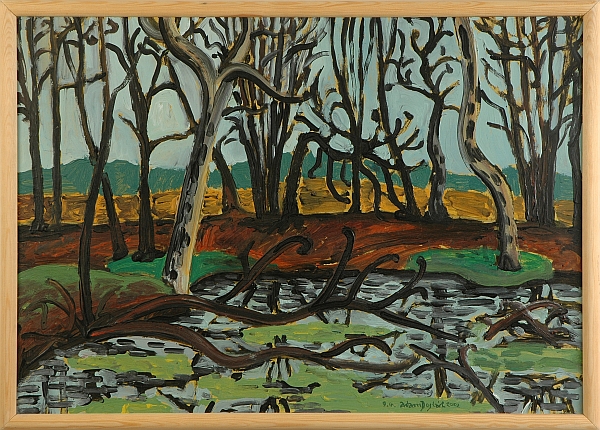 Jezírka u Lipiny II, akryl na sololitu, (49,5 x 69,5) cm, 9. IV. 2002, majetek autora
