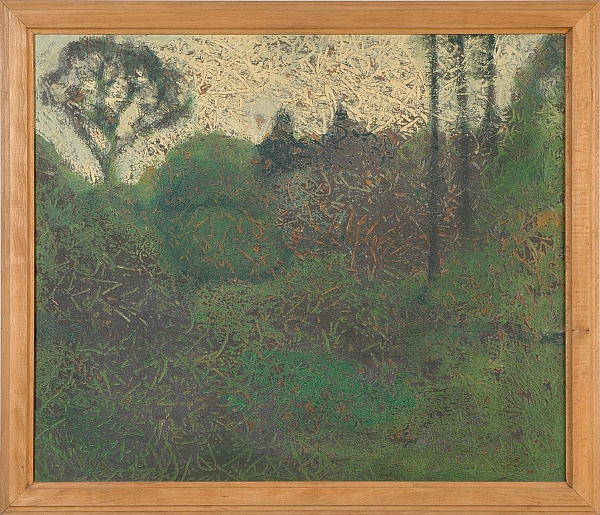 Krajina s mokřadem, akryl a písek na překližce, (49 x 57) cm, VII/2001, soukromá sbírka