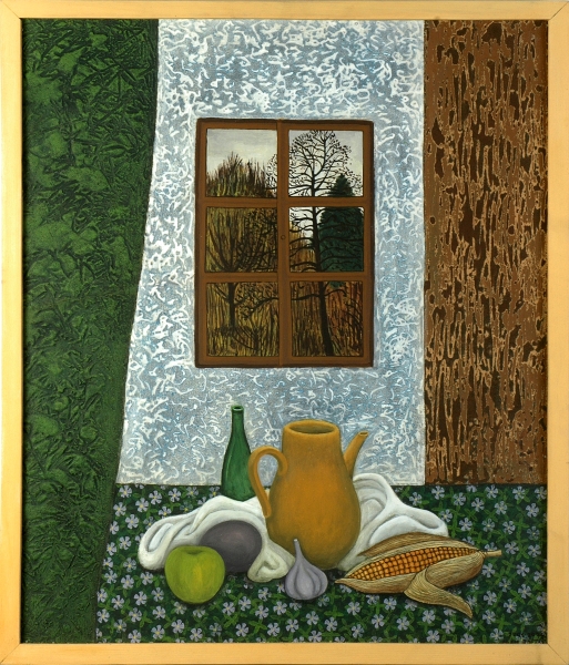 Zátiší, akryl na dřevotřísce, cca (70 x 90) cm, 2001 - 2003, soukromá sbírka