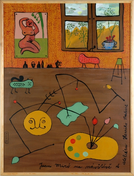 J. Miró na návštěvě v ateliéru H. Matisse, akryl na plátně, cca (120 x 85) cm, 2005, s. sbírka