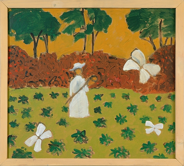 Hlídačka zelí, akryl na dřevotřísce, cca (40 x 50) cm, asi 2003, soukromá sbírka