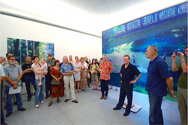 Vernisáž výstavy. Zprava: Oldřich Šembera, Miroslav Schubert, Ladislav Daněk (úvodní slovo).